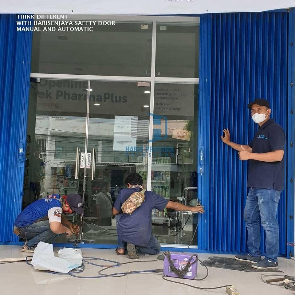 Folding Gate Merupakan Jenis Pintu Geser yang di operasikan dengan cara manual,Lipatan pintu bertumpuk diantara kedua sisi Ruangan.